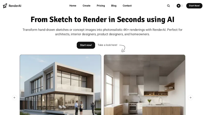 - Transform hand-drawn sketches or concept images into photorealistic 4K+ renderings with RenderAI.